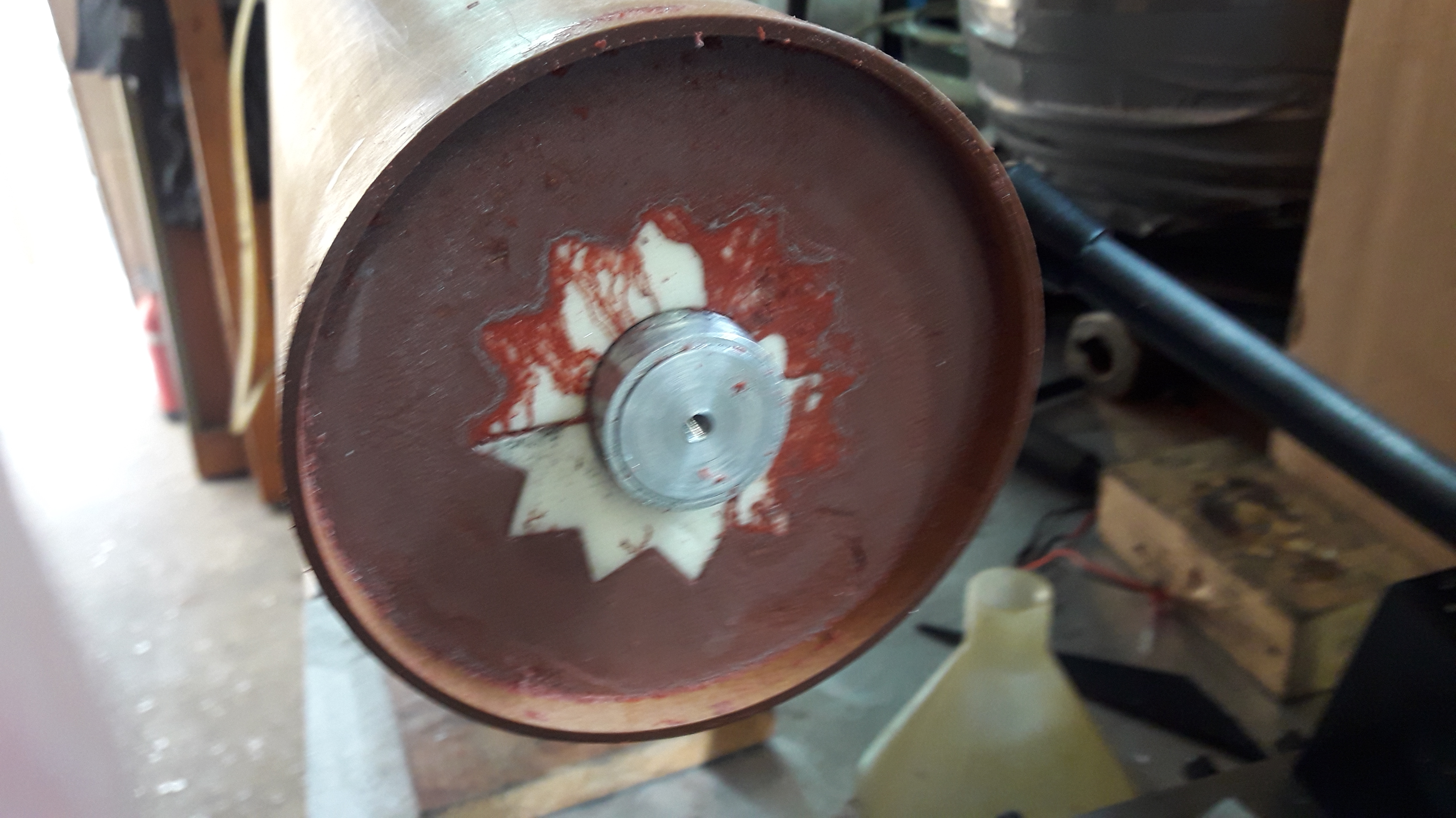 After curing for several days, the lower plug of the casting tube was removed to reveal the nice star shaped XPS core supported by a 30mm aluminium rod.