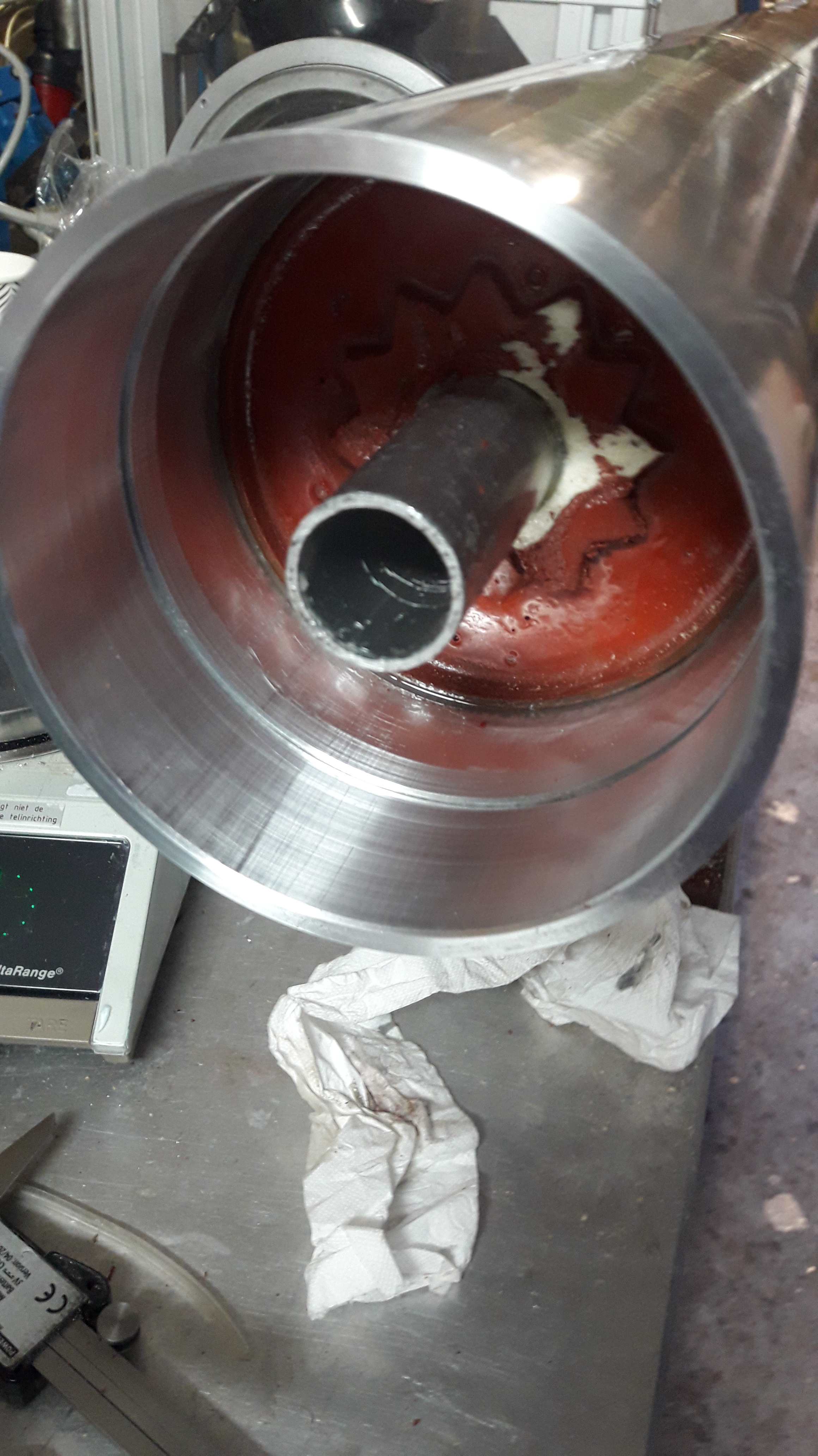 For casting of the propellant, a modified hobart mixer bowl was used with a plugable opening in the bottom. This allows for a mess-free filling of the casting tube.